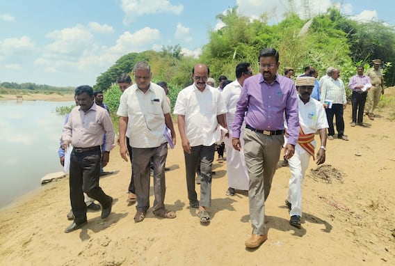 தஞ்சாவூர்: தஞ்சை மாவட்டம் திருக்காட்டுப்பள்ளி அருகே பவனமங்கலம் காவிரி ஆறு, விளாங்குடி மற்றும் வாழ்க்கை கிராம கொள்ளிடம் ஆற்றில், மணல் குவாரி அமைக்க கூடாது என விவசாயிகள் தொடர்ந்த வழக்கு தொடர்பாக, சென்னை உயர்நீதிமன்ற மதுரை கிளை வழிகாட்டுதலின்படி, கலெக்டர் காவிரி, கொள்ளிடம் ஆற்றில் ஆய்வு செய்தார். தஞ்சாவூர் மாவட்டம் திருக்காட்டுப்பள்ளி அருகே பவனமங்கலம் கிராமத்தில், காவிரி ஆற்றிலும், திருவையாறு அருகே விளாங்குடி, வாழ்க்கை கிராமத்தில், கொள்ளிடம் ஆற்றில் செயல்பட்ட மணல் குவாரிக்கு எதிராக, கடந்த 2018ம் ஆண்டு பவனமங்கலத்தை சேர்ந்த பாலகணேஷ், பொன்னுராமன், விளாங்குடியை சேர்ந்த சச்சிதானந்தம் ஆகியோர், சென்னை உயர் நீதிமன்ற மதுரை கிளையில் எதிர்ப்பு தெரிவித்து வழக்கு தொடர்ந்தனர். வழக்கு தொடர்ந்து நடைபெற்று வந்தது. இந்நிலையில், கடந்த சில நாட்களுக்கு முன்பு, காவிரி மற்றும் கொள்ளிடம் ஆற்றில், மனுவில் குறிப்பிட்டுள்ள கிராம பகுதிகளில், மணல் பரப்பு குறித்து ஆய்வு செய்து அறிக்கை அளிக்க வேண்டும் என நீதிபதிகள் உத்தரவிட்டனர். இதையடுத்து நீதிமன்ற உத்தரவின்படி கலெக்டர் தினேஷ் பொன்ராஜ் ஆலிவர், பவனமங்கலத்தில் காவிரி ஆற்றிலும், விளாங்குடி,வாழ்க்கை கிராமத்தில் கொள்ளிடம் ஆற்றிலும் ஆய்வு செய்தார்.
