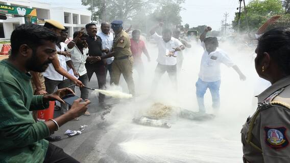 இந்நிலையில் இன்று தஞ்சை ஆற்றுப்பாலத்தில் விடுதலைத் தமிழ்ப்புலிகள் கட்சியினர் கமல், சிவகார்த்திகேயன் உருவ பொம்மையை எரித்து போராட்டத்தில் ஈடுபட்டனர். அப்போது தீயணைப்பு வீரர்கள் தண்ணீர் ஊற்றி அணைத்தனர். இதில் 50க்கும் மேற்பட்டவர்களை போலீசார் கைது செய்தனர். இதனால் அந்த பகுதியில் பரபரப்பு ஏற்பட்டது.