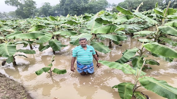 இந்நிலையில் திருவையாறு பகுதிகளில் ஆடிப்பட்டமாக வாழை சாகுபடி நடைபெற்றது. இதற்கான அறுவடைகள் சித்திரை, வைகாசி மாதங்களில் நடைபெறும். தஞ்சாவூர் மாவட்டத்தில் கடந்த இரண்டு தினங்களாக அனைத்து பகுதிகளிலும் மழை பெய்து வருகிறது. எனவே தற்போது பெய்த மழையில் இளம் வாழை கன்றுகள் முழுவதுமாக மழை நீரில் மூழ்கியுள்ளது. இதனால் அந்த வாழைப்பயிர்கள் அழுகும் நிலை உள்ளது.