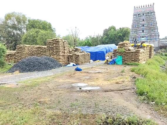 இந்த நிலையில் தற்போது கடந்த இரண்டு நாட்களாக பெய்து வரும் மழையில் நெல் மூட்டைகள் நானே தொடங்கி பாதித்து சேதமடைந்து வருகிறது. இதனால் அரசுக்கு நஷ்டம் ஏற்படும் சூழல் ஏற்பட்டுள்ளது. எனவே தேங்கிக் கிடக்கும் நெல் மூட்டைகளை கிடங்குக்கு கொண்டு செல்ல வேண்டும் என்று இப்பகுதி விவசாயிகள் கோரிக்கை விடுத்துள்ளனர். மேலும் இது குறித்து இப்பகுதி சமூக ஆர்வலர்கள் கூறுகையில், ஒவ்வொரு முறையும் விவசாயிகளிடம் இருந்து கொள்முதல் செய்யப்படும் நெல்லை உரிய முறையில் பாதுகாக்காமல் திறந்தவெளியில் அடுக்கிவைத்து மழையில் நனைவதும், அதனை நனையாமல் பாதுகாப்பதற்கு உரிய தார்ப்பாய் கூட தயாராக வைத்துக்கொள்வது இல்லை என்றும், இதனால் ஒவ்வொரு மழையிலும் பல லட்சம் டன் நெல் மூட்டைகள் மழையில் நனைந்து சேதமடைவது தொடர்கதையாக இருந்து வருகிறது. இதனை அரசு கவனத்தில் எடுத்துக்கொண்டு, அரசுக்கு வருவாய் பற்றாக்குறை உள்ள இந்த சூழலில் அரசு பணம் இவ்வாறு வீணாவதை தடுக்க உடனடியாக நடவடிக்கை எடுக்க வேண்டும் என வலியுறுத்தி உள்ளனர்.