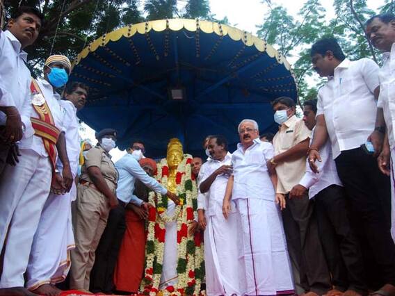 திருவள்ளுவரை ஒரு மதத்தை சார்ந்தவராக சித்தரித்து வருகிறார்கள். திருவள்ளுவர், ராஜராஜ சோழன் சாதி, மதத்துக்கு அப்பாற்பட்டவர்கள். ஆனால் வேண்டும் என்று உள்நோக்கத்தோடு வரதலாற்றை திருத்துகின்ற இந்த முயற்சியை முறியடிக்கும் வகையில் நாங்கள் வள்ளுவர் சிலைக்கு மாலை அணிவிக்க அனுமதி கேட்டு இருந்தோம். ஆனால் அரசு தடை விதித்துள்ளது. அதனை நாங்கள் ஏற்று உடையாளூரில் உள்ள ராஜராஜசோழன் சமாதிக்கு சென்று மரியாதை செலுத்த உள்ளோம். அங்கு அவருக்கு கோவில் அமைக்க முயற்சி மேற்கொள்ளப்பட்டு வருகிறது. அதற்கு நாங்கள் முழு ஒத்துழைப்பு அளிப்போம். அரசும் உரிய முயற்சிகளை மேற்கொள்ள வேண்டும் என்றார். பின்னர், கும்பகோணத்தை அடுத்த உடையாளூரிலுள்ள ராஜராஜசோழன் என்றழைக்கப்படும் லிங்கத்திற்கு, கும்பகோணம் எம்எல்ஏ சாக்கோட்டை அன்பழகன், இந்து மக்கள் கட்சி நிறுவனர்தலைவர் அர்ஜூன்சம்பத், சிதம்பரம் மன்னர் பரம்பரையினர், நாம் தமிழக் கட்சியினர் உள்ளிட்ட பல்வேறு அமைப்பினர் மாலை அணிவித்து மரியாதை செலுத்தினர்.