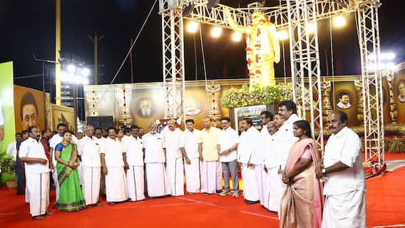 தஞ்சைக்கு வந்த தமிழக முதல்வர் தஞ்சை மணிமண்டபம் பகுதியில் இருந்து ரோட் ஷோவாக நடந்து சென்றார். ரோட் ஷோ செல்லும் வழியில் பொதுமக்களிடம் மனுக்களை பெற்றுக் கொண்டார். தஞ்சை மணிமண்டபம், ரயிலடி, ஆற்று பாலம் வழியாக சுமார் 2.5 கிலோமீட்டர் தூரம் நடந்து சென்று தஞ்சை பழைய பேருந்து நிலையம் பகுதியில் அமைக்கப்பட்டிருந்த 9 அடி முழு உருவ சிலையை திறந்து வைத்தார். ரோடு ஷோவாக சென்றபோது வழி நெடுகிலும் பொதுமக்கள் மற்றும் கட்சியினர் பிரமாண்ட வரவேற்பு அளித்தனர்.