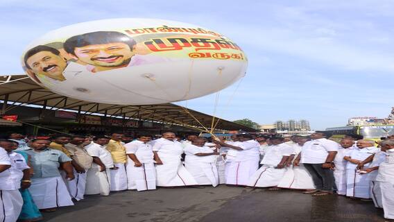 தஞ்சாவூர்: தஞ்சைக்கு வருகை தரும் முதலமைச்சரை வரவேற்கும் விதமாக ராட்சத பலூனை அமைச்சர் கோவி. செழியன் பறக்க விட்டார்.