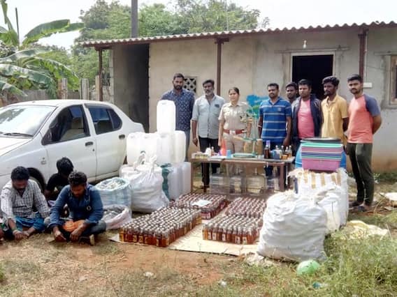 மேலும், இப்போலி மதுபான ஆலையில் தஞ்சாவூர் விளார் சாலையைச் சேர்ந்த சே.அறிவழகன் (30), மாரியம்மன்கோயில் பகுதியைச் சேர்ந்த அருண்பாண்டியன் (33), திருவாரூர் மாவட்டம் திருக்கண்ணமங்கையைச் சேர்ந்த செ.முத்துக்குமார் (29), புதுச்சேரி மாநிலம் காரைக்காலை நேரு நகரைச் சேர்ந்த பாபு (எ) விஜயகுமார் (42), காரைக்கால் அருகேயுள்ள கோவில்பத்து திரவுபதியம்மன் கோயில் தெருவைச் சேர்ந்த பழனியப்பன் (38) ஆகியோர் வேலைபார்த்து வந்ததும் கண்டுபிடிக்கப்பட்டது. இதையடுத்து, போலி மதுபான ஆலையில் இருந்து 700 மதுபாட்டில்கள், 2,000 காலி மதுபாட்டில்கள், 2 மூட்டைகளில் மதுபாட்டில் மூடிகள், பிளாஸ்டிக் கேன்கள், மதுபானம் தயாரிக்க பயன்படுத்தப்பட்ட மூலப்பொருட்கள், கார் ஆகியவற்றை போலீஸார் பறிமுதல் செய்து, போலி மதுபான ஆலைக்கு சீல் வைத்தனர்.