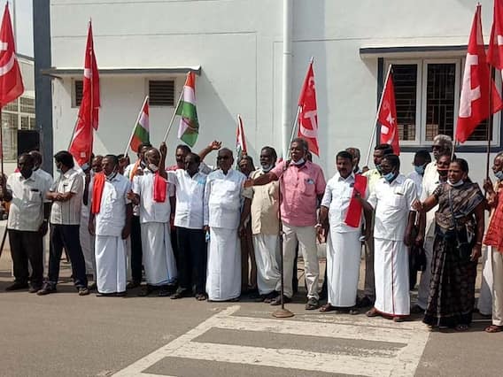 குடியரசு தினத்தை முன்னிட்டு ஆண்டு தோறும் தலைநகர் டெல்லியில் நடைபெறும் குடியரசு தின அணிவகுப்பில் தமிழ்நாடு அரசின் அலங்கரிக்கப்பட்ட ஊர்திகளும், கலைக்குழுக்களும் பங்கேற்கும். இதில் தமிழகத்தின் பண்பாடு, கலாச்சாரம், வீரம் செறிந்த சுதந்திர போராட்ட வரலாறுகள் இடம் பெற்று, அனைவரின் கவனத்தையும் ஈர்த்து சிறப்பான விருதுகளும், பரிசுகளும் பெற்று, தமிழ்நாட்டுக்கு பெருமை சேர்த்துள்ளது. இந்த நிலையில் வரும் 26 ஆம் தேதி நடைபெறும் குடியரசு தின அணிவகுப்பில் தமிழ்நாடு பங்கேற்க அனுமதியில்லை என்ற அறிவிப்பை கண்டித்து தஞ்சை ஸ்மார்ட் சிட்டி பழைய பேருந்து நிலையம் முன்பு தஞ்சை மாவட்ட இந்திய கம்யூனிஸ்ட் கட்சி சார்பில் கண்டன ஆர்ப்பாட்டம் நடைபெற்றது.