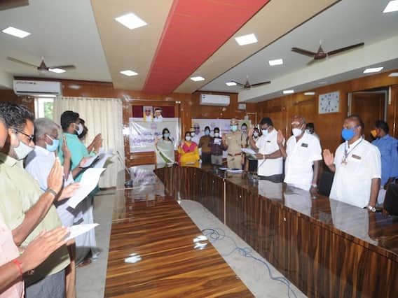ஆகையால் தமிழ்நாடு அரசால் தடை செய்யப்பட்ட புகையிலை மற்றும் நிக்கோட்டினை சேர்க்கப்பட்ட பொருட்கள் கொண்ட குட்கா பான்மசாலா உள்ளிட்ட எந்த சுவைக்கும் பொருட்களையும் தயாரிக்கவோ, வாகனங்களில் எடுத்துச் செல்லவோ, விநியோகிக்கவும், சேமிக்கவும், மற்றும் விற்பனை செய்யவும் மாட்டேன் எனவும் அரசின் அனைத்து நடவடிக்கைகளுக்கும் பொதுமக்கள் நலன் காத்திட நானும் எனது நிறுவனத்தைச் சார்ந்த பணியாளர்களும் ஒத்துழைத்து உணவு வணிகம் புரியவும் என்ற உறுதிமொழி மாவட்ட ஆட்சித்தலைவர் காயத்ரி கிருஷ்ணன் அவர்கள் தலைமையில் ஏற்கப்பட்டது.