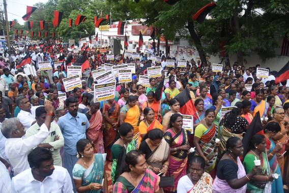மணிப்பூர் மாநிலத்தில் பெண்கள் மீது நடத்தப்பட்ட பாலியல் வன்முறை சம்பவங்களையும் கண்டித்து கோஷம் எழுப்பப்பட்டது.