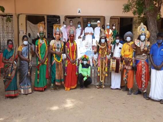 மயிலாடுதுறையில் ஊரடங்கால் வாழ்வாதாரம் இழந்த இசை மற்றும் நாடகக் கலைஞர்களுக்கு வாழும்கலை அமைப்பினர் 50 ஆயிரம் ரூபாய் மதிப்பிலான அத்தியாவசிய பொருட்களை வழங்கினர். இலவசமாக பெற மனமின்றி விழிப்புணர்வு நாடகம் நடத்தி நன்றிக்கடன் செலுத்திய நாடகக் கலைஞர்கள்.