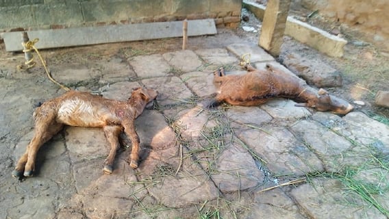 தஞ்சாவூர் மாவட்டம் ராமநாதபுரம் தெற்கு மூப்பனார் தெருவை சேர்ந்த சம்பத்குமார் மகன் சரவணன் (41). விவசாயி. இவர் தனது வீட்டில் மாடுகள் மற்றும் ஆடுகளை வளர்த்து வருகிறார். நேற்று மாலை வழக்கம்போல் மேய்ச்சலுக்கு அழைத்துச் சென்று விட்டு மாடுகள் மற்றும் ஆடுகளை தனது வீட்டின் பின்புறம் கட்டி வைத்தார்.