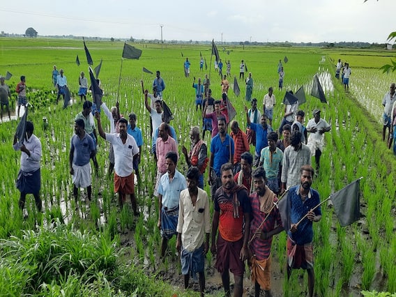 தஞ்சாவூர் மாவட்டம், திருவையாற்றில் போக்குவரத்து நெரிசல் இருப்பதால் புறவழிச்சாலை அமைக்க பொதுமக்கள் தொடர்ந்து பல ஆண்டுகளாக கோரிக்கை வைத்து வருகின்றனர். திருவையாறு கடைவீதியில் போக்குவரத்து நெரிசல் ஏற்பட்டால் வெகு நேரம் காத்திருக்கும் நிலை ஏற்படுகிறது. இதனால் பலருக்கும் பல்வேறு வகையிலும் பாதிப்புகள் ஏற்பட்டுக் கொண்டே வந்தது. பொதுமக்களின் தொடர் கோரிக்கையை அடுத்து புறவழிச்சாலை அமைக்க திருவையாறு, கண்டியூர், மணக்கரம்பை , கீழ திருப்பந்துருத்தி, கல்யாணபுரம் உள்ளிட்ட ஊர்களில் 100 ஏக்கர் விவசாய நிலங்களை கையகப்படுத்தும் பணிகளுக்கான அளவீடும் எடுக்கும் பணிகளும் நடந்தது. இதற்கு அப்பகுதி விவசாயிகள் கடும் கண்டனம் தெரிவித்து பல கட்ட போராட்டங்களை நடத்தினர். மேலும், மூன்று போகம் விளையும் நிலங்களை கையகப்படுத்தக்கூடாது என கலெக்டர் உள்ளிட்ட அதிகாரிகளிடம் பல முறை மனு அளித்தும் எந்த நடவடிக்கையும் இல்லை.