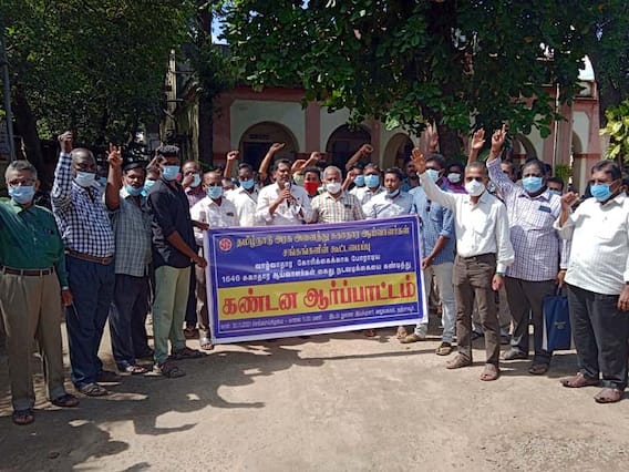 அவர்களை போலீஸார் பேச்சுவார்த்தைக்கு அழைக்காமல், கைது செய்து சிறையில் அடைத்தனர். இதனை கண்டிக்கும் விதமாக மாநிலம் முழுவதும் சுகாதார ஆய்வாளர்கள் போராட்டத்தில் ஈடுபட்டனர். அதன்படி தஞ்சாவூர் மாவட்டத்தில், தமிழ்நாடு அரசு அனைத்து சுகாதார ஆய்வாளர்கள் சங்கங்களின் கூட்டமைப்பு சார்பில், மாவட்ட சுகாதாரப்பணிகள் துணை இயக்குநர் அலுவலக வளாகத்திற்குள் ஆர்ப்பாட்டத்தில் ஈடுபட்டனர். ஆர்ப்பாட்டத்துக்கு, பொது சுகாதாரத்துறை அலுவலர்கள் சங்கத்தின் மாவட்ட செயலாளர் இளங்கோவன் தலைமை வகித்தார். சுகாதார ஆய்வாளர் சங்கங்களின் மாவட்ட செயலாளர் சுதாகர், கூட்டமைப்பின் செயலாளர் மு.சிங்காரவேல், மருந்தாளுநர் சங்கத்தின் மாவட்ட செயலாளர் பாஸ்கரன் ஆகியோர் கண்டன உரையாற்றினர்.