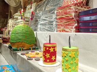 அந்த வகையில் மயிலாடுதுறையில் பிரபல தனியார் இனிப்பகம் ஒன்று குழந்தைகளை கவரும் வகையில் புது முயற்சியாக சங்குசக்கரம், 15 கிலோவில் பாலினால் தயாரிக்கப்பட்ட அனுகுண்டு சுவீட், 30 கிலோ எடையில் பூந்தியால் செய்யப்பட்ட புஷ்வானம், ராக்கேட் போன்ற இனிப்புகளை தயார் செய்து வைத்துள்ளனர். மேலும் குழந்தைகள் உடலுக்கு ஆரோக்கியம் தரும் ஓமம் கலந்த குச்சி பிஸ்கட், பட்டர் பிஸ்கட், தேங்காய் பிஸ்கட், மற்றும் எள்ளுமிட்டாய் உள்ளிட்ட கடலையால் தயாரிக்கப்பட்ட மிட்டாய் வகைள் என நூற்றுக்கணக்கான இனிப்புகள் மிட்டாய் ரகங்கள் விற்பனைக்கு வந்துள்ளது. வீட்டுமுறை பலகாரங்களான தினை, சாமை, வரகில் தயாரிக்கப்பட்ட அதிரசம், கருப்புஉளுந்து உருண்டை, கெட்டிஉருண்டை, ரவா உருண்டை, கோதுமைமாவு உருண்டை என் பல்வேறு பாரம்பரிய இனிப்புகளை தயார் செய்து விற்பனை செய்யப்பட்டு வருகிறது.