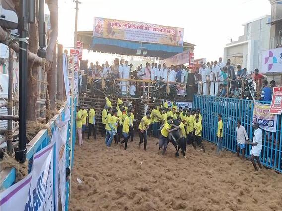 தஞ்சை அருகே திருக்கானூர்பட்டியில் புனித அந்தோணியார் பொங்கலை முன்னிட்டு ஆண்டுதோறும் ஜல்லிக்கட்டு போட்டி நடத்தப்பட்டு வருகிறது. அதன்படி இந்த ஆண்டு ஜல்லிக்கட்டு போட்டிக்கு அரசின் அனுமதி பெறப்பட்டது. தொடர்ந்து ஜல்லிக்கட்டு நடத்தப்படும் மாதா கோவில் தெருவில் வாடிவாசல் அமைப்பதற்கான பணிகள் மும்முரமாக நடந்தன.