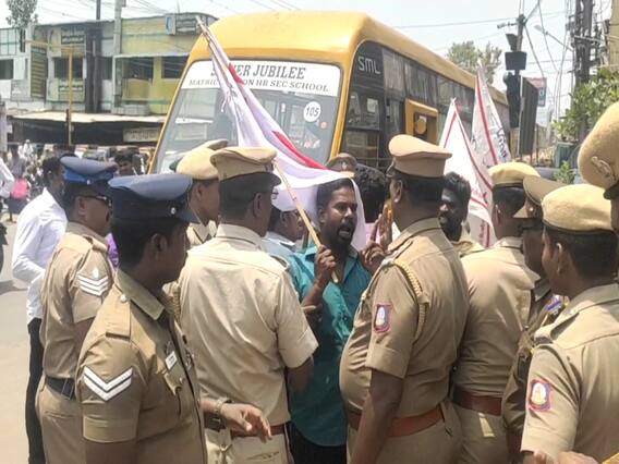 காவல்துறையினர் வைத்திருந்த பேரிகார்டுகளை பிடித்து இழுத்ததால் காவல்துறையினருக்கும் - போராட்டக்காரர்களிடையே தள்ளுமுள்ளு ஏற்பட்டு அப்பகுதியில் பெரும் பரபரப்பு ஏற்பட்டது. இதில் பேரிகாட்டை விடாமல் பிடித்து இழுத்த ஒருவரை காவல்துறையினர் அப்புறப்படுத்தும் போது தன்னை காவல்துறையினர் கிள்ளியதாக வாக்குவாதத்தில் ஈடுபட்டார். மேலும் வேண்டும் என்றால் தன்னை அடித்து கொள்ளுங்கள் ஆனால் கிள்ளுவது அநாகரீகமான செயல் என தன்னை கிள்ளிய காவலரை பார்த்து கேட்க அந்த இடத்தில் பரபரப்பை ஏற்படுத்தியது. தொடர்ந்து காவல்துறையினர் அனைவரையும் கைது செய்து தனியார் திருமண மண்டபத்தில் அடைத்தனர்.