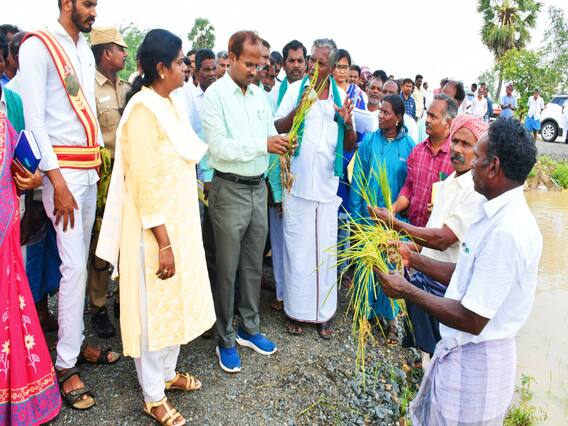 நடவு மற்றும் நேரடி நெல் விதைப்பு செய்து 25 நாட்களே ஆன இந்த பயிர்கள் கடந்த 4 நாட்களாக நீரில் முழ்கி உள்ளதால் செய்வதறியாது விவசாயிகள் கவலை அடைந்துள்ளனர். மேலும், இந்த பயிர்களில் தேங்கியுள்ள மழை நீரை வடிய வைப்பதற்கு பொதுப்பணித்துறை மற்றும் அரசு அதிகாரிகள் நடவடிக்கை மேற்கொள்ள வேண்டும் என்ற கோரிக்கைகளை முன்வைத்து விவசாயிகள் போராடி வந்தனர். இந்த சூழலில், கொள்ளிடம் ஒன்றியம், சீர்காழி ஒன்றியம், செம்பனார்கோயில் ஒன்றியங்களில் சம்பா நெற்பயிர்கள் பாதிப்புகள் குறித்து வேளாண் துறை இயக்குனர் அண்ணாதுரை மற்றும் மாவட்ட ஆட்சியர் லலிதா உள்ளிட்டோர் நேரில் ஆய்வு மேற்கொண்டனர். முன்னதாக சீர்காழி அருகே வேட்டங்குடி, ஆச்சாள்புரம், எடமணல், திருமுல்லைவாசல், தென்னாம்பட்டினம் உள்ளிட்ட பகுதிகளில் மழை நீரில் மூழ்கி பாதிக்கப்பட்ட சம்பா பயிர்களை பார்வையிட்டனர்.