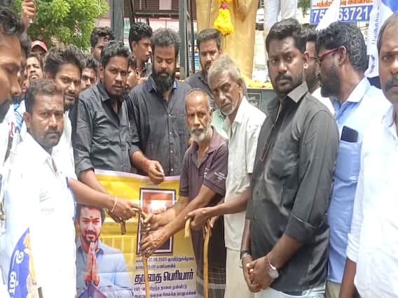 அந்த வகையில் பெரியாரின் பிறந்தநாள் நாடுமுழுவதும் கொண்டாப்பட்டது. மயிலாடுதுறையில் பிறந்த நாளை முன்னிட்டு பல்வேறு கட்சியினர் பெரியாரின் திருவுருவ சிலைக்கு மாலை அணிவித்து மரியாதை செலுத்தினர். மயிலாடுதுறையில் விஜய் மக்கள் இயக்கத்தினர் மாவட்ட தலைவர் குட்டி கோபி தலைமையில் 50க்கும் மேற்பட்டோர் கருப்பு சட்டை அணிந்து விஜயா திரையரங்கில் இருந்து பேரணியாக வந்து கேணிக்கரையில் உள்ள அவரது சிலைக்கு மாலை அணிவித்து மரியாதை செலுத்தினர். தொடர்ந்து பெரியார் பயன்படுத்திய கைத்தடி போன்று 25 -க்கும் மேற்பட்ட முதியோருக்கு இலவசமாக கைத்தடியை வழங்கி பட்டாசு வெடித்து கொண்டாட்டத்தில் ஈடுபட்டனர்.