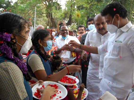 தஞ்சாவூரில் 1330 திருக்குறளையும் படித்த மாணவ, மாணவிகளைப் பள்ளிக் கல்வித் துறை அமைச்சர் அன்பில் மகேஷ் பொய்யாமொழி மலர் துாவி வாழ்த்தினார். தஞ்சாவூர் மார்னிங் ஸ்டார் மெட்ரிகுலேஷன் பள்ளியில் பயிலும் 36 மாணவ, மாணவிகள் ஏற்கெனவே 1,330 திருக்குறளையும் மனப்பாடம் செய்து ஒப்பித்தனர். இவர்களும், திருக்குறள் மனப்பாடம் செய்து வரும் 10 மாணவ, மாணவிகளும், உலகத் திருக்குறள் பேரவையினரும் தஞ்சாவூருக்கு வந்த பள்ளிக் கல்வித் துறை அமைச்சர் அன்பில் மகேஷ் பொய்யாமொழியைச் சந்தித்து கோரிக்கை மனுவை அளித்தனர்.