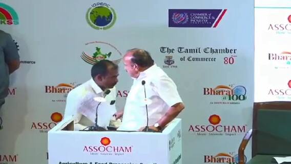 தஞ்சாவூர்: தஞ்சாவூரில் செயல்பட்டு வரும் நிஃப்டெம்மில் இன்று 3ம் தேதி வேளாண்மை, உணவு பதப்படுத்துதல் வளர்ச்சி மாநாடு மற்றும் கண்காட்சி தொடக்க விழா நடந்தது. இதில் பங்கேற்ற அமைச்சர் எம்.ஆர்.கே.பன்னீர்செல்வம் தனது உதவியாளரை எருமை மாடா நீ என ஒருமையில் பேசியது அனைத்து தரப்பினரையும் முகம் சுளிக்க வைத்தது.