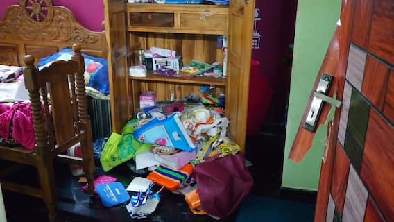 இதனால், ராஜலெட்சுமியை வீட்டை அவரது சகோதரி ராதா கண்காணித்து வந்தார். இந்நிலையில் நேற்று ராதா தனது அக்கா ராஜலட்சுமி வீட்டை பார்க்க சென்ற போது, வீட்டின் முன்பக்க கதவு உடைக்கப்பட்டு இருந்தது. இதனால் அதிர்ச்சியடைந்த ராதா வீட்டின் உள்ளே சென்று பார்த்த போது, பீரோ உடைக்கப்பட்டு அதில் இருந்த பொருட்கள் கிடந்தன.