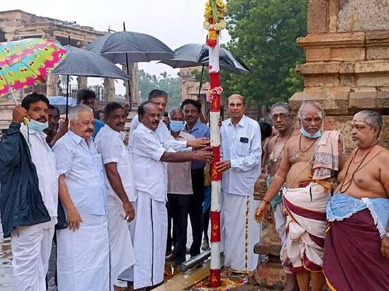 இதையொட்டி பெரிய கோயிலில் பந்தல்கால் நடும் நிகழ்ச்சி நேற்று காலை நடைபெற்றது. இதில் சதய விழா குழுத் தலைவர் து.செல்வம், துணைத் தலைவர் சி.மேத்தா, தஞ்சாவூர் அரண்மனை தேவஸ்தான பரம்பரை அறங்காவலர் சி.பாபாஜி ராஜா போன்ஸ்லே, உதவி ஆணையர் ச.கிருஷ்ணன், கோயில் செயல் அலுவலர் எஸ்.மாதவன் உள்ளிட்டோர் கலந்து கொண்டனர். சதய விழாவான வரும் 13 ஆம் தேதி காலை 7 மணிக்கு பெரியகோயிலுக்கு வெளியே உள்ள மாமன்னன் ராஜராஜசோழன் சிலைக்கு மாலை அணிவித்தல், 9 மணிக்கு பெருவுடையாருக்கு 36 வகை பொருள்களால் பேரபிஷேகம், பிற்பகல் 1 மணிக்கு பெருந்தீப வழிபாடு, மாலை 6 மணிக்கு கோயில் பிரகாரத்துக்குள் சுவாமி புறப்பாடு ஆகிய நிகழ்ச்சிகள் நடைபெறவுள்ளன.