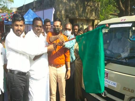 அதனை தொடர்ந்து திடக்கழிவு மேலாண்மை பணிகளுக்காக ஓஎன்ஜிசி நிறுவனம் சார்பில் ஒரு டாடா ஏஸ் வண்டி, 16 குப்பை அள்ளும் மூன்று சக்கர வண்டிகள், குப்பை அள்ளுவதற்கான உபகரணங்கள் பணியாளர்களுக்கான மழைக் கோட்டுகள் ஆகியவற்றை மாவட்ட ஆட்சியர் அருண் தம்புராஜிடம் ஓஎன்ஜிசி நிர்வாகிகள் வழங்கினர். அதனைத் தொடர்ந்து நகராட்சி தூய்மை பணியாளர்களுக்கு மழைக்கோட்டுகள் மற்றும் பாதுகாப்பு உபகரணங்களை மாவட்ட ஆட்சியர் அருண் தம்புராஜ் மீன் வளர்ச்சிக் கழகத் தலைவர் கவுதமன் ஆகியோர் வழங்கினர். மேலும் நாகப்பட்டினம் நகராட்சி முழுவதும் 12 நாட்கள் நடைபெறும் மெகா தூய்மை பணியையும் தொடங்கி வைக்கப்பட்டது.