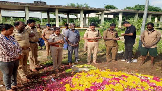 இதையடுத்து 13 (11 ஆண், 2 பெண்) பேரின் உடல்களை அடக்கம் செய்ய இருப்பதாக மருத்துவமனை நிர்வாகத்தினரிடம் போலீசார் தெரிவித்தனர். இதை ஏற்று கொண்ட மருத்துவமனை நிர்வாகம், உரிய சான்றிதழ்களில் போலீசாரிடம் கையெழுத்து பெற்று இறந்தவர்களின் உடல்களை அடக்கம் செய்ய கொண்டு செல்ல அனுமதித்தனர். இதையடுத்து அந்த 13 பேரின் உடல்களையும் ஆம்புலன்ஸ் மூலம் வடக்குவாசலில் உள்ள ராஜாகோரி மயானத்திற்கு போலீசார் கொண்டு வந்தனர். பின்னர் அங்கு தூய்மை பணியாளர்கள் உதவியுடன் தனித்தனியாக குழிகள் தோண்டப்பட்டு, 13 உடல்களுக்கும் மாலை அணிவிக்கப்பட்டு, உரிய மரியாதையுடன் அடக்கம் செய்யப்பட்டது.