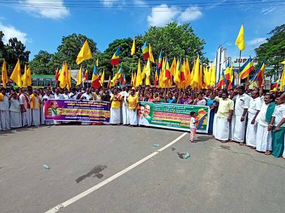 வன்னியர்களின் 10.5% இட ஒதுக்கீட்டை ரத்து செய்த உச்ச நீதிமன்ற தீர்ப்பினை தடை ஆணை பெற்று இடஒதுக்கீட்டை நடைமுறைப்படுத்த கோரியும், வன்னியர்களின் அடையாளமான அக்னி குண்டத்தையும் வன்னியர் சங்க தலைவராக இருந்து மறைந்த ஜெ.குருவையும் இலிவுப்படுத்திய ஜெய்பீம் திரைப்பட இயக்குனர் தயாரிப்பாளர் நடிகர் ஆகியோர் மருத்துவர் ராமதாசை பற்றி அவதூறு பேசி சமூக வலைத்தளத்தில் வெளியிட்ட பசும்பொன் பாண்டியனை ஆகியோர் மீது காவல் நிலையங்களில் கொடுக்கப்பட்ட புகார் மீது நடவடிக்கை எடுத்து கைது செய்ய வேண்டும் உள்ளிட்ட கோரிக்கைகளை வலியுறுத்தி, தஞ்சை மாவட்ட பாட்டாளி மக்கள் கட்சி வன்னியர் சங்கம் சார்பில் தஞ்சை பனகல் கட்டிடம் அருகில் கண்டன ஆர்ப்பாட்டம் நடைபெற்றது. ஆர்ப்பாட்டத்திற்கு வன்னியர் சங்க மாநில துணை தலைவர் ம.க.ஸ்டாலின் தலைமை வகித்தார். இதில் முன்னாள் மாவட்ட செயலாளர் அரசூர் ஆறுமுகம், வன்னியர் சங்க மாவட்ட தலைவர் தமிழ்ச்செல்வம், உழவர் பேரியக்க மாவட்ட செயலாளர் அசி.பன்னீர் செல்வம், கட்டுமான தொழிற் சங்க தலைவர் பந்தல்.கனேசன் ஆகியோர் முன்னிலை வகித்தனர்.