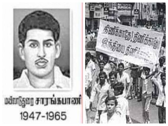 அனைத்து பள்ளிகளிலும் இந்தி கட்டாய பாடமாக்கப்பட்டுள்ளதாக 1938 ஆம் ஆண்டு ராஜாஜி தலைமையிலான சென்னை மாகாண அரசு அரசாணை வெளியிட்டது. இதை எதிர்த்து பெரியார், மறைமலை அடிகளார் உள்ளிட்டோர் வழிகாட்டுதலில் போராட்டம் வெடித்தது. போராட்டத்தில் ஈடுபட்டு சிறை சென்ற நடராசன், உடல்குன்றி சென்னை சிறையில் உயிரிழந்தார். மொழிப் போராட்டத்தின் முதல் களப் பலி அவர்தான். அதைத் தொடர்ந்து கும்பகோணத்தைச் சேர்ந்த தாளமுத்துவும் சென்னை சிறையில் உயிர் நீத்தார்.நடராசன், தாளமுத்துவின் உயிரிழப்பை தொடர்ந்து போராட்டம் தீவிரமடைந்ததால், இந்தி பயிற்று மொழி தொடர்பான அரசாணை 1940 ஆம் ஆண்டு திரும்பப் பெறப்பட்டது. ஆனால், 1965 ல் இந்திய ஆட்சிமொழியாக இந்தி மட்டுமே இருக்கும் என்று, பிரதமர் லால்பகதூர் சாஸ்திரி தலைமையிலான காங்கிரஸ் அரசின் அறிவிப்பால், மீண்டும் போராட்டம் உருவானது. அப்போது அண்ணா தலைமையில் தி.மு.க.வின் போராட்டம் உக்கிரமானது. இதில், தீக்குளித்தும், குண்டடிப்பட்டும் மாணவர்கள், இளைஞர்கள் பலர் உயிரைவிட்டனர்.