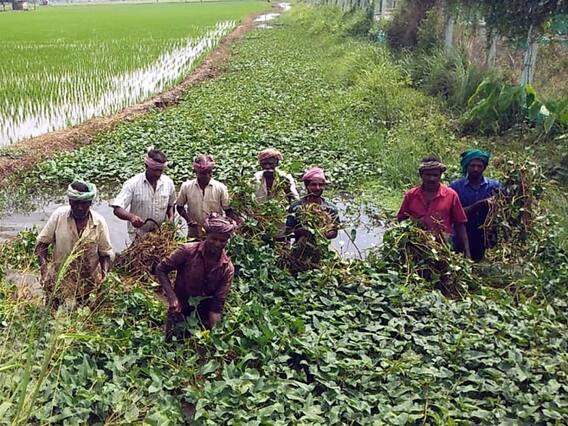 இந்நிலையில் தற்போது காவிரி ஆற்றில் தண்ணீர் வருவதால், குறுவை முடிந்து தற்போது சம்பா மற்றும் தாளடி நெற்பயிர் சாகுபடி பணியில் மும்முரமாக ஈடுபட்டு வருகின்றனர். ஆனால், நாககுடி பாசன வாய்க்காலை கடந்த இரண்டு வருடங்களாக துார் வாராததால், வாய்க்காலில் ஆகாயதாமரை, முட்டைசெடிகள், ஆலகொடிகள் படர்ந்து, தண்ணீர் செல்ல முடியாத நிலை ஏற்பட்டுள்ளது. இது குறித்து மாவட்ட நிர்வாகத்திடமும், பொதுப்பணித்துறை அதிகாரிகளிடம் புகார் அளித்தும், கடந்த வருடம்தான், துார் வாரப்பட்டது. இந்தாண்டு துார் வார முடியாது என்று பதில் அளிக்கின்றனர். தற்போது வாய்க்காலில் தண்ணீர் அதிகமாக வருவதால், வாய்க்கால் தண்ணீர், வயலுக்குள் பாய்ந்தால், அனைத்து பயிர்களும் அழுகி விடும் என்பதால், சுவாமிமலை விவசாய சங்கம் சார்பில் வாய்க்கால் பாசனத்தில் சாகுபடி செய்யும் விவசாயிகள், சொந்த பணத்தில், நாககுடி பாசன வாய்க்காலை துார் வாரும் பணியில் ஈடுபட்டுள்ளனர்.