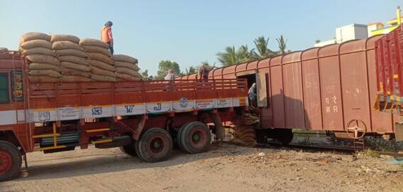இந்த நெல் தமிழகத்தின் பல்வேறு பகுதிகளுக்கு அரவைக்காக அனுப்பப்பட்டு அதில் இருந்து கிடைக்கும் அரிசி பொது வினியோகத் திட்டத்தில் வினியோகம் செய்யப்பட்டு வருகிறது. இதற்காக நெல் மூட்டைகள் லாரிகள் மற்றும் சரக்கு ரயில் மூலம் தமிழகத்தின் பல்வேறு மாவட்டங்களுக்கு அனுப்பப்பட்டு வருகின்றன. இது தவிர தஞ்சை மாவட்டத்தில் உள்ள பல்வேறு அரவை ஆலைகளுக்கும் அனுப்பப்படும். இந்த நிலையில் சேமிப்பு கிடங்குகளில் இருந்து 2000 டன் நெல் லாரிகளில் ஏற்றி தஞ்சாவூர் ரயில் மற்றும் கும்பகோணம் ரயில் நிலையத்திற்கு கொண்டு வரப்பட்டது. பின்னர் தஞ்சாவூர், கும்பகோணம் ரயில் நிலையத்தில் சரக்கு ரயிலில் 42 வேகன்களில் ஏற்றப்பட்டது. இதில் தஞ்சாவூரில் இருந்து தருமபுரி, கும்பகோணத்தில் இருந்து திருவண்ணாமலைக்கு 2000 டன் நெல் அரவைக்காக அனுப்பி வைக்கப்பட்டது. சாலைமறியல்