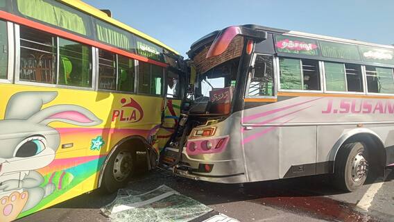 வயலூரில் இரு பஸ்கள் நேருக்கு நேர் மோதல்