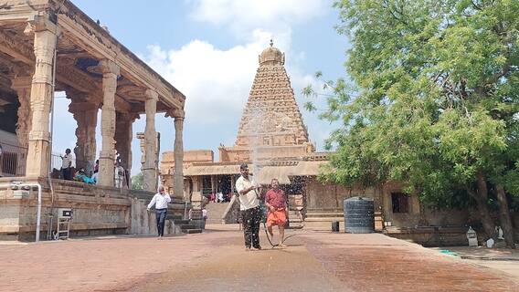 பெரிய கோயில் தொல்லியல் துறை, தமிழ்நாடு இந்து சமய அறநிலைத்துறை, தஞ்சாவூர் அரண்மனை தேவஸ்தானம் என மூன்று நிர்வாகத்தின் கட்டுப்பாட்டில் உள்ளது. தற்போது வெயிலின் தாக்கம் அதிகளவில் உள்ளதால் பெரிய கோயிலுக்கு வரும் சுற்றுலா பயணிகள் சிரமமின்றி நடப்பதற்காக கோயில் வெளி பிரகாரங்களில் நடைவிரிப்புகளில் கோயில் ஊழியர்கள் பைப் மூலம் தண்ணீர் தெளிக்கும் பணியில் ஈடுபட்டு வருகின்றனர்.