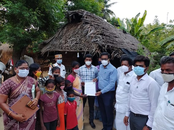தஞ்சாவூர் மாவட்டம், பேராவூரணி அருகே உள்ள சொர்ணக்காடு ஊராட்சி, பட்டத்தூரணி வடக்கு கிராமத்தைச் சேர்ந்தவர் பாஸ்கரன் மனைவி மணியம்மை, குடிசை வீட்டில் வசித்து வருகிறார். இவர் தனது வசித்து வரும் வீட்டினை புதுப்பித்துக் கட்ட முடிவு செய்தார். ஆனால், அந்த இடம் சம்பந்தமாக, உறவினர்கள் சிலர் இடையூறு ஏற்படுத்தியதாக கூறப்படுகிறது. இதுகுறித்து கடந்த இரு தினங்களுக்கு முன்பு மணியம்மை, கண்ணீருடன் வீடியோ ஒன்றை வெளியிட்டார். அதில், அனைத்து பிரச்சனைகளையும் விரிவாகப் பேசி, மாவட்ட ஆட்சியர் உரிய நடவடிக்கை எடுக்க வேண்டும் என கேட்டுக் கொண்டிருந்தார். இந்த வீடியோ சமூக வலைத்தளங்களில் வைரலான நிலையில், பட்டுக்கோட்டை சார் ஆட்சியர் பாலசந்தர், இதுகுறித்து உடனடியாக மாவட்ட ஆட்சியரின் கவனத்திற்கு கொண்டு சென்றார்.