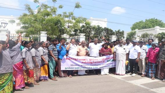 தஞ்சாவூர்: தொடர்ந்து 3ம் நாளாக தூய்மைப்பணியாளர்கள் போராட்டத்தில் ஈடுபட்டுள்ளனர். எங்கு தெரியுங்களா?