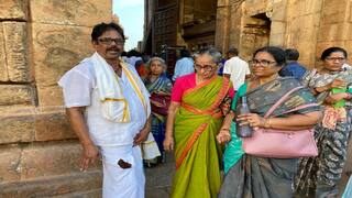 லட்சுமண குமார் தனது தாயார் வயதானவர் என்பதால் சக்கர நாற்காலியில் வைத்து கோவிலுக்குள் அழைத்துச் சென்றார். தொடர்ந்து பெருவுடையார், பெரியநாயகி அம்மன் சன்னதியில் குடும்பத்தினருடன் சுவாமி தரிசனம் செய்தனர். நேற்று பிரதோஷம் என்பதால் விளக்கத்தைவிட பக்தர்களின் கூட்டம் அதிகம் இருந்தது. பிரதோஷத்தை முன்னிட்டு, நந்தியம் பெருமானுக்கு நடந்த அபிஷேகத்தை மனம் குளிர பார்த்துவிட்டு கோயிலின் நுழைவாயில் பகுதியான கேரளாந்தகன் நுழைவு வாயிலுக்கு வந்தார். பிரதோஷம் முடிந்த நிலையில் பக்தர்கள் கூட்டம் அதிகம் என்பதால் நெருக்கி அடித்துக் கொண்டு வந்தனர்.