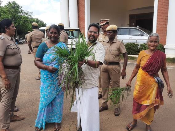 இதையடுத்து போலீசார் தீக்குளிக்க முயன்ற 3 பேரும் போலீஸ் ஸ்டேஷனுக்கு அழைத்து செல்லப்பட்டனர். இந்த சம்பவம் தஞ்சை கலெக்டர் அலுவலகத்தில் பெரும் பரபரப்பை ஏற்படுத்தியது. கலெக்டர் அலுவலகம் உள்ளே விவசாயிகள் கூட்டம் நடந்து வந்த நிலையில் வெளியில் இதுபோன்ற சம்பவம் நடந்தது குறிப்பிடத்தக்கது. சேதப்படுத்தப்பட்ட நெற் பயிரை காட்டி மூதாட்டி மணியம்மாள் கண்ணீர் விட்டு கதறி அழுததும் பார்த்தவர்களை மிகுந்த வேதனைக்கு உள்ளாக்கியது.