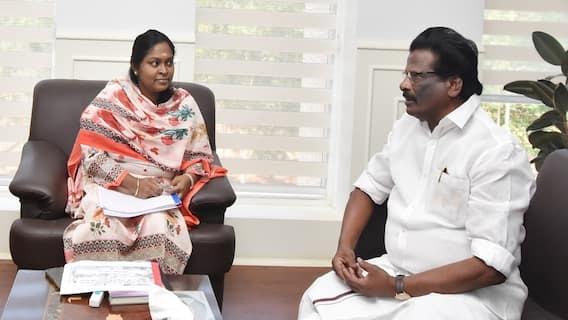 தஞ்சாவூர்: தஞ்சாவூர் மாவட்ட கலெக்டர் அலுவலகத்தில் மாவட்ட கலெக்டர் பிரியங்கா பங்கஜம் தமிழ்நாடு ஆதிதிராவிடர் வீட்டு வசதி மற்றும் மேம்பாட்டு கழகம் (தாட்கோ) தலைவர் மதிவாணனுடன் நேரில் சந்தித்து தாட்கோ சார்பில் மாவட்டத்தில் மேற்கொள்ளப்பட்டு வரும் வளர்ச்சிப் பணிகள் முன்னேற்றம் குறித்து கலந்துரையாடினார்.