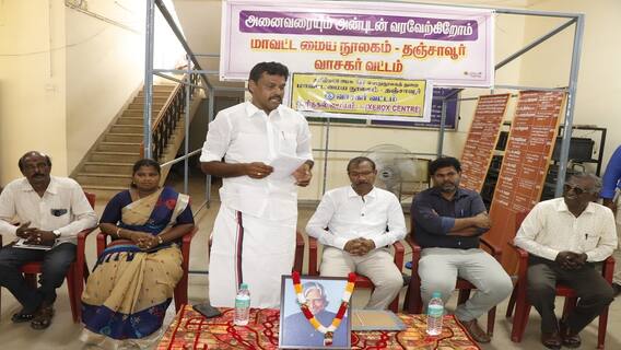 தஞ்சை மாவட்ட மைய நூலகத்தில் போட்டித் தேர்வு எழுதும் மாணவ, மாணவிகளுக்கு போட்டித் தேர்வு எப்படி எழுதுவது என்ற மாதிரி தேர்வு நடத்தப்படுவதும் குறிப்பிடத்தக்கது. நிகழ்ச்சியில் மாவட்ட மைய நூலகத்திற்கு நிதி அளித்து தஞ்சாவூரை சேர்ந்த டாக்டர் கோ.ஆனந்தி வசந்த், ஊராட்சி ஒன்றியக்குழு தலைவர் உஷாபுண்ணியமூர்த்தி, ஆசிரியர் பா.சுரேஷ், சின்னப்பன், கார்த்திகேயன், ரெ.கதிர்வேல், பூதலுார் ஆர்.மோகன், ஒரத்தநாடு ஆர்.ராஜேந்திரன், புதூர் சிவக்குமார் ஆகியோர் புரவலர்களாக தங்களை இணைத்துக் கொண்டனர்.