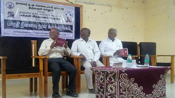 தஞ்சாவூர் பள்ளியக்ராரம் வெண்ணாற்றங் கரையில் அமைந்துள்ள நாவலர் ந.மு. வேங்கடசாமி நாட்டார் கல்லூரி மற்றும் மக்கள் சிந்தனை பேரவை தஞ்சை நகர வாசகர் வட்டம் இணைந்து பாரதி நினைவு நாள் கருத்தரங்கை நடத்தின.