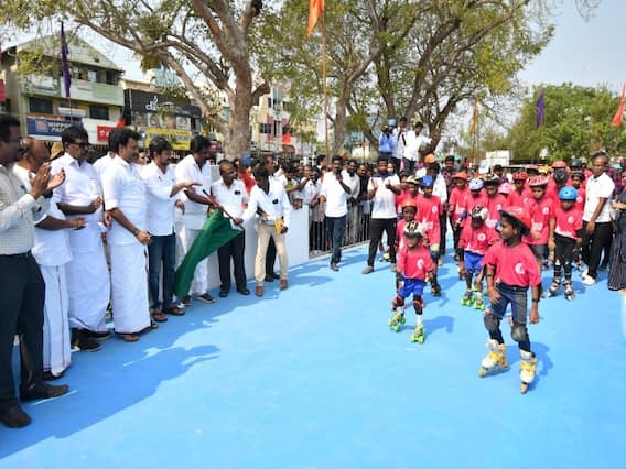 தஞ்சாவூர்: தஞ்சாவூர் அன்னை சத்யா விளையாட்டரங்கத்தில் ஸ்கேட்டிங் தளம், கையுந்து பந்து விளையாட்டு தளம் உட்பட ரூ. 5 கோடியில் நிறைவேற்றப்பட்ட திட்டங்களை இளைஞர் நலன் மற்றும் விளையாட்டு மேம்பாட்டுத் துறை அமைச்சர் உதயநிதி ஸ்டாலின் நேற்று திறந்து வைத்தார்.
