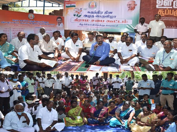 பாபுராஜபுரத்தில் கிராம சபா: கும்பகோணம் வட்டம் பாபுராஜபுரம் ஊராட்சியில் கிராம சபா கூட்டம் நடைபெற்றது. சுதந்திரத்தினத்தை முன்னிட்டு அனைத்து கிராம ஊராட்சிகளிலும் கிராம சபா கூட்டம் நடத்த வேண்டும் என மாவட்ட நிர்வாகம் சார்பில் உத்தரவிடப்பட்டது. இதனை முன்னிட்டு பாபுராஜபுரத்தில் நடைபெற்ற கூட்டத்திற்கு ஊராட்சித் தலைவர் மகேஸ்வரி கணேசன் தலைமை வகித்தார். துணைத்தலைவர் பிச்சையம்மாள், ஒன்றியக்குழு உறுப்பினர் கவிதா ஆகியோர் முன்னிலை வகித்தனர். கூட்டத்தில், குடிநீர், சாலை வசதி, 100 நாள் வேலைத் திட்டம், மாற்றுத்திறனாளிகளுக்கான ஊக்கத்தொகையை உயர்த்தி வழங்கவேண்டும் உள்ளிட்ட பல்வேறு குறைகள் குறித்து கோரிக்கைகள் வைக்கப்பட்டது. இதில் கலந்து கொண்ட கும்பகோணம் எம்எல்ஏ சாக்கோட்டை அன்பழகன், பொது மக்களின் அனைத்து கோரிக்கைகளும் அந்தந்த துறைக்கு அனுப்பி வைத்துத் தீர்வு காணப்படும், உங்களுக்கு ஏதேனும் குறைகள் இருந்தால் உடனடியாக செல்போனில் தெரிவித்தால் தீர்வு காணப்படும் என்றார். மேலும் சுதந்திர தினத்தை முன்னிட்டு கும்பகோணம் கோட்டத்திலுள்ள பல்வேறு கோயில்களில் பொது விருந்து நடைபெற்றது. சுவாமிமலை முருகன் கோயில் மற்றும் கும்பேஸ்வரர் கோயிலில் மாநிலங்களவை உறுப்பினர் எஸ்.கல்யாணசுந்தரம், கும்பகோணம் சாரங்கபாணி கோயிலில் எம்எல்ஏ சாக்கோட்டை அன்பழகன், நாகேஸ்வரர் கோயிலில் மண்டலக்குழுத் தலைவர் தட்சிணாமூர்த்தி மற்றும் பலர் பொது விருந்தில் பங்கேற்றனர். இதனை தொடர்ந்து, மாவட்ட நிர்வாகம் சார்பில், கும்பகோணம் வட்டம் தேனாம்படுகை கிராமத்திலுள்ள சிமிலிமேடு பகுதியில் நடந்த பொது விருந்தில் தஞ்சாவூர் மாவட்ட கலெக்டர் தினேஷ்பொன்ராஜ் ஆலிவர், கோட்டாட்சியர் லதா, வட்டாட்சியர் தங்கபிரபாகரன், காவல் துணை கண்காணிப்பாளர் அசோகன் உட்பட பலர் கிராமமக்களுடன் உணவருந்தினர்.