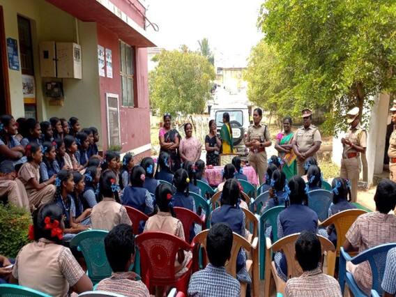 இதேபோல் தஞ்சை அருகே வல்லத்தில் நடந்த நிகழ்ச்சியில் பள்ளி குழந்தைகளை அனைத்து மகளிர் காவல் நிலையத்திற்கு வரவழைத்து அவர்களுக்கு ஆக்கப்பூர்வமான ஆலோசனைகளை வல்லம் டிஎஸ்பி நித்யா வழங்கினார்.