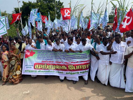 தஞ்சாவூர்: திருமண்டங்குடி சர்க்கரை ஆலை பிரச்சனைக்கு தீர்வு காண வலியுறுத்தி தஞ்சை மாவட்ட கலெக்டர் அலுவலகத்தை முற்றுகையிட்ட தமிழ்நாடு விவசாயிகள் சங்கத்தினர் 150 பேரை போலீசார் கைது செய்தனர்.