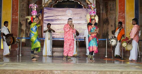 பொங்கல் திருவிழா நீர், நிலம், நெருப்பு, வாயு, ஆகாயம் ஆகிய பஞ்ச பூதங்களையும் வழிபடும் விதமாகக் கொண்டாடுகிறோம். இந்து, தமிழர்களின் பண்பாட்டில் ஒவ்வொரு பண்டிகைக்கும் அர்த்தங்கள் இருக்கின்றன என்று தஞ்சாவூரில் தொடங்கிய மரபுசார் இரு நாள் கலை விழாவில் சிவாஜி ராஜா போன்ஸ்லே பேசினார். தஞ்சாவூர் அரண்மனை வளாகத்திலுள்ள தர்பார் கூடத்தில் தமிழக அரசு தொல்லியல் துறை சார்பில் பொங்கல் விழா மரபுசார் இரு நாள் கலை நிகழ்ச்சி தொடங்கியது. தொடக்க விழாவுக்கு தஞ்சாவூர் சரசுவதி மகால் நூலக ஆளுமை குழு ஆயுள் கால உறுப்பினர் து. சிவாஜி ராஜா போன்ஸ்லே தலைமை வகித்து பேசுகையில், "தமிழர் திருநாளான பொங்கல் விழா இந்தியா முழுவதும் கொண்டாடப்படுகிறது. இதை வட மாநிலங்களில் மகர சங்கராந்தி என கொண்டாடப்பட்டு வருகிறது. இந்தப் பொங்கல் திருவிழா நீர், நிலம், நெருப்பு, வாயு, ஆகாயம் ஆகிய பஞ்ச பூதங்களையும் வழிபடும் விதமாகக் கொண்டாடுகிறோம். இந்து, தமிழர்களின் பண்பாட்டில் ஒவ்வொரு பண்டிகைக்கும் அர்த்தங்கள் இருக்கின்றன" என்றார். பின்னர், சரசுவதி மகால் நூலக தமிழ்ப் பண்டிதரும், வரலாற்று ஆய்வாளருமான மணி. மாறன் பேசுகையில், "தமிழர் திருநாளான பொங்கல் விழா மதம், இனம் கடந்து அனைத்து மக்களாலும் கொண்டாடப்படுகிறது. தனுசு ராசியிலிருந்து, மகர ராசிக்கு சூரியன் இடம்பெயர்வதையே பொங்கல் திருநாளாகக் கொண்டாடுகிறோம். இத்திருநாளில்தான் வானியல் கூறுகள் அதிமாகச் சங்கமிப்பதால், நம் முன்னோர்கள் கொண்டாடியுள்ளனர்" என்றார். தஞ்சாவூர் கலைக்கூடம் காப்பாட்சியர் சிவக்குமார் பேசுகையில், "நம்முடைய கலை, கலாசாரம், பண்பாடு ஆகியவை மிகப்பெரிய பாரம்பரிய சொத்துகள். உலக அளவில் மிக அதிக அளவில் பாரம்பரிய நினைவு சின்னங்கள் நிறைந்துள்ள நாடு நம் இந்தியாதான். இவற்றை அனைவரும் பாதுகாக்க வேண்டும்" என்றார். இதையடுத்து, சிறப்பு விருந்தினர்களை தொல்லியல் துறை தஞ்சாவூர் மாவட்டதொல்லியல் அலுவலர் த. தங்கதுரை கௌரவித்தார். தொல்லியல் அலுவலர் சு.மூ. உமையாள் வரவேற்றார். தொல்லியல் அலுவலர் அ. சாய்பிரியா நன்றி கூறினார். இதை தொடர்ந்து கரகாட்டம், காவரியாட்டம், பிற்பகலில், தப்பாட்டம், ஒயிலாட்டம், மயிலாட்டம், காவடியாட்டம் ஆகியவை நடைபெற்றன. தொடர்ந்து இன்று காலை நாதம், தப்பாட்டம், கரகம், களியாட்டம், கருப்புசாமியாட்டம், புளியாட்டம், பிற்பகலில் மேளம், நாதம், கரகாட்டம், நாட்டுப்புற பல்சுவை நிகழ்ச்சிகள் ஆகியவை நடந்தது. இன்று காணும் பொங்கலை ஒட்டி பெரியகோவில், அரண்மனை உட்பட பல இடங்களுக்கு வருகை புரிந்த சுற்றுலாப்பயணிகள் இந்த நிகழ்ச்சிகளை கண்டு களித்தனர். நமது பாரம்பரிய ஒயிலாட்டம், தப்பாட்டம், காவடியாட்டம் ஆகி