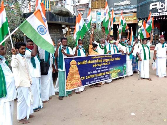 இந்தியாவில் மக்கள் பிரதமர் லால்பகதூர் சாஸ்திரியின் முழக்கமான ஜெய் கிசான் (வாழ்க விவசாயிகள்), ஜெய் ஜரான் (வாழ்க ராணுவ வீரர்கள்) என்ற முழக்கத்தை முழுமனதோடு மதிப்பளித்து, இந்தியாவின் 75 வது சுதந்திர ஆண்டில் 69 சதவீத விவசாயிகள், விவசாய தொழிலாளர்கள் நலன் கருதி, இனிவரும் ஒவ்வொரு ஆண்டும் வேளாண்மைக்கு என சிறப்பு நிதி அறிக்கையினை பாராளுமன்றத்தில் வெளியிட்டு, இந்தியாவிற்கு புதிய பெருமையை சேர்க்க வேண்டும் என்பதை மத்திய அரசுக்கு வலியுறுத்தும் விதமாக கும்பகோணத்தில் உள்ள உச்சிபிள்ளையாருக்கு 108 சிதறு தேங்காய் உடைத்து வழிபாடு நடத்தி, தொடர்ந்து காந்தி சிலைக்கு தேசிய கொடியுடன் சென்று மனு அளித்து, தேசிய கொடியுடன் நுாதன போராட்டம் செய்தனர். நிகழ்ச்சிக்கு விவசாயி வாசுதேவன் தலைமை வகித்தார் விவசாயி இளங்கோவன் முன்னிலை தஞ்சை மாவட்ட காவிரி விவசாயிகள் பாதுகாப்பு சங்க செயலாளர் சண்முகசுந்தரம் அவர்கள் விளக்க உரையாற்றினார் விவசாயி சுவாமிநாதன் நன்றி கூறினார்.