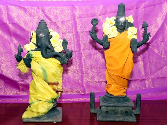 நாகப்பட்டினம் மாவட்டம் திட்டச்சேரி அருகே சன்னியாசி பனங்குடி கிராமத்தில் உள்ள தாளரணேசுஸ்வரர் கோவிலில், கடந்த 1992ம் ஆண்டு ஆடிப்பூர அம்மன் மற்றும் விநாயகர் உலோக சிலை உள்ளிட்ட பொருட்கள் கொள்ளை போனது. இது குறித்து திட்டச்சேரி போலீசில் வழக்கு பதிவு செய்யப்பட்டு விசாரணை நடத்தப்பட்டது. பின்னர் 1993ஆம் ஆண்டு சிலை கண்டுபிடிக்க முடியவில்லை என போலீசார் வழக்கை முடித்தனர். இந்நிலையில் 2017 ஆம் ஆண்டு உயர்நீதிமன்றம் உத்தரவில், பல்வேறு மாவட்டங்களில் இருந்த அனைத்து சிலை திருட்டு வழக்குகளும் கண்டுபிடிக்க முடியாத வழக்குகள் உள்பட அனைத்து வழக்கையும் சிலை திருட்டு தடுப்பு பிரிவுக்கு மாற்றி விசாரித்து நடவடிக்கை எடுக்க உத்தரவிட்டது. இதையடுத்து சிலைகள் மாயமாகி வழக்குப்பதிவு செய்யப்பட்டு ஆவணங்கள் இல்லாத வழக்குகளை கண்டறிந்து நடவடிக்கை எடுக்க சிலை கடத்தல் தடுப்பு பிரிவு போலீசாருக்கு தமிழக டி.ஜி.பி.,சைலேந்திரபாபு உத்தரவிட்டார். சிலை கடத்தல் தடுப்பு பிரிவு ஏ.டி.எஸ்.பி., ராஜாராம் தலைமையில் இன்ஸ்பெக்டர் இந்திரா, எஸ்.ஐக்கள் தமிழ்செல்வன், பாலச்சந்திரன் அடங்கிய போலீசார் நடத்திய விசாரணையில், திட்டச்சேரி சிலை வழக்கில் ஆவணங்கள் மாயமாகி இருந்தது தெரியவந்தது.