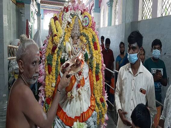 சரஸ்வதி அம்மனின் உற்சவமூர்த்தி சிலைக்கு வெண்பட்டு உடுத்தி அலங்காரம் செய்யப்பட்டு காட்சி அளிக்கப்பட்டு வருகிறது. பக்தர்கள் அனைவரும் வெண் தாமரை மலர்களை சரஸ்வதி அம்மனுக்கு காணிக்கையாக்கி வழிபாடு நடத்தி வருகின்றனர். தமிழகம் மட்டுமின்றி கர்நாடகா, கேரளா போன்ற பிற மாநிலங்களில் இருந்தும் ஏராளமான பக்தர்கள் வருகை தந்துள்ளனர். கொரோனா பரவல் காரணமாக முகக் கவசம் அணியாதவர்கள் கோயிலுக்குள் செல்ல அனுமதி வழங்கப்படவில்லை. பக்தர்களின் பாதுகாப்பிற்காக நூற்றுக்கும் மேற்பட்ட காவல்துறையினர் மற்றும் ஊர்க்காவல் படையினர் பாதுகாப்பு பணியில் ஈடுபடுத்தப்பட்டுள்ளனர்.