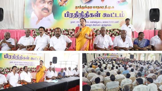 தூத்துக்குடி மாநகர திமுக பிரதிநிதிகள் கூட்டம் எட்டையாபுரம் சாலையில் உள்ள கலைஞர் அரங்கில் மாநகர செயலாளர் ஆனந்த சேகரன் தலைமையில் மேயர் ஜெகன் பெரியசாமி முன்னிலையில் நடைபெற்றது. வடக்கு மாவட்ட திமுக செயலாளரும், சமூகநலன் மற்றும் மகளிர் உரிமைத்துறை அமைச்சர் கீதாஜீவன் பேசுகையில், நடைபெற்று முடிந்த நாடாளுமன்ற தேர்தலுக்கு பின் நடைபெறும் கூட்டமாக இருப்பதால் இது உங்களுக்கு நன்றி தெரிவிப்பதற்காகத் தான் இந்த கூட்டம். காரணம், கனிமொழி எம்.பி. இந்த தொகுதியில் 86,780 வாக்குகள் அதிகம் பெற்று வெற்றி பெற்றுள்ளார். தமிழக முதலமைச்சர் தளபதியார் ஓராண்டுக்கு முன்பே திட்டமிட்டு செயல்பட்டு நமக்கு அறிவுரைகள் வழங்கினார்.