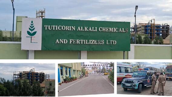 தூத்துக்குடியில் டாக் தொழிற்சாலையில் அமோனியா வாயு கசிவால் ஏற்பட்ட தீ விபத்தில் ஊழியர் ஒருவர் உயிரிழந்தார். மேலும் 4 பேர் படுகாயம் அடைந்தனர்.