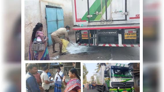 கேரள மாநிலம் கோழிகோட்டிலிருந்து மீன்கழிவுகளை ஏற்றி தமிழகத்தில் கொட்ட கொண்டு வந்த கர்நாடக பதிவெண் கொண்ட கண்டெய்னர் லாரியை மடக்கி பிடித்த நாம் தமிழர் கட்சி நிர்வாகிகள்.